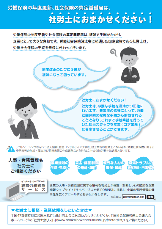 労働保険の年度更新、社会保険の算定基礎届の手続期限は7月11日(月)です。経営労務等のご相談は、お早めに社会保険労務士まで。